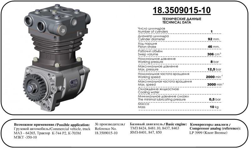 Посмотреть фотоКомпрессор ЯМЗ,ТМЗ (Паневежио АУРИДА) ан.LP3999 KNORR-BREMSE18-3509015-1024000